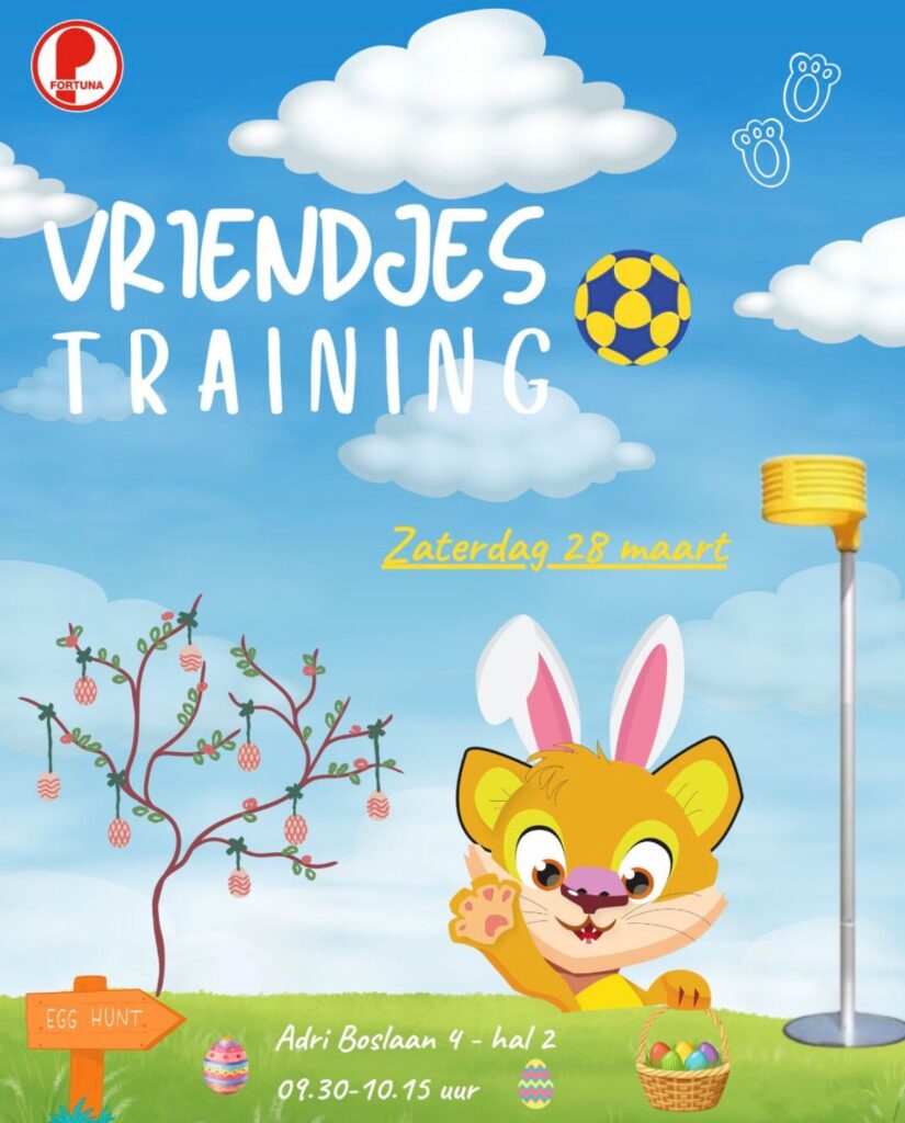 Op zaterdag 28 maart organiseren we een superleuke Vriendjestraining bij Fortuna/Ruitenheer voor alle jongens en meisjes van 3-6 jaar oud! Tijd: 09.30 – 10.15 uur Locatie: Adriaan Boslaan 4 – Fortunahal 2 Neem zoveel mogelijk vriendjes en vriendinnetjes mee, want