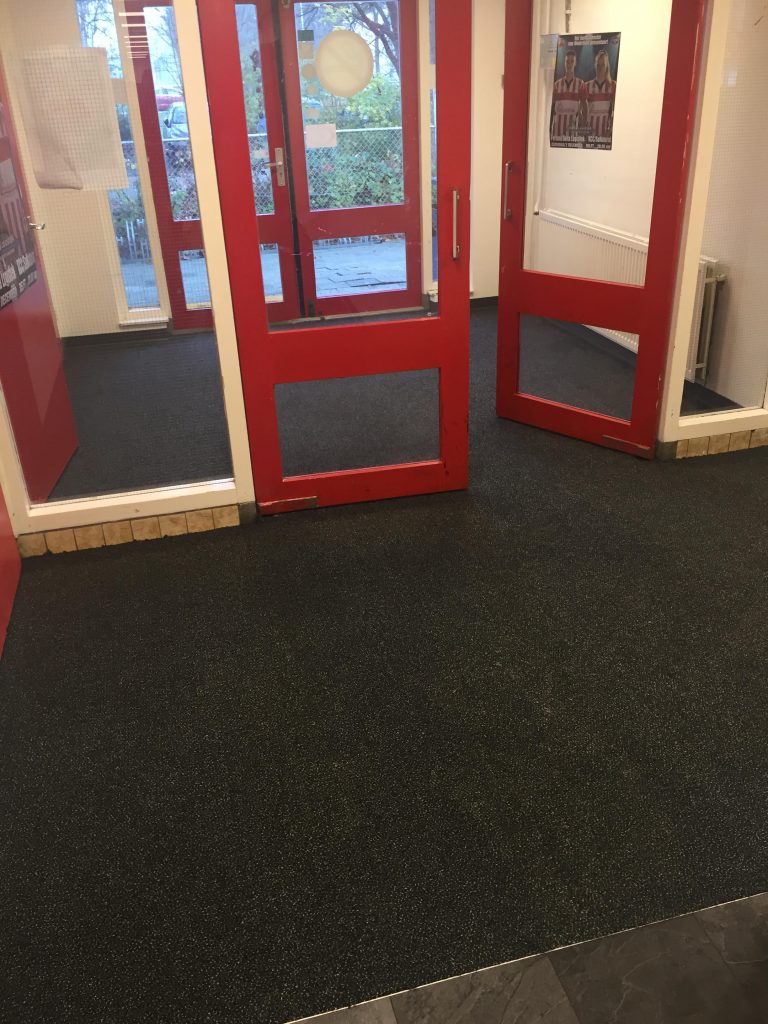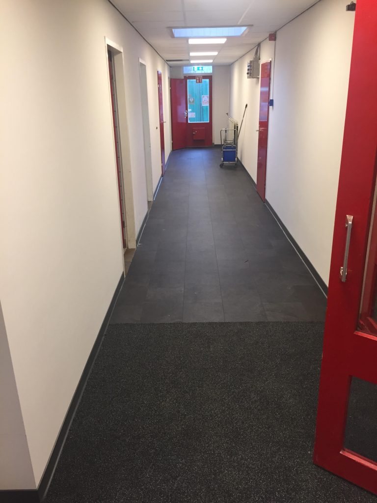 zuinige LED-verlichting in de gangen en de vloer is vernieuwd. Ook de entree naar de hal is voorzien van een mooie nieuwe inloopmat. Daarnaast is de verlichting in de bestuurskamer en de kleine kantine vernieuwd met LED-verlichting waarbij in de kleine kantine een mooie dimmer is geplaatst.