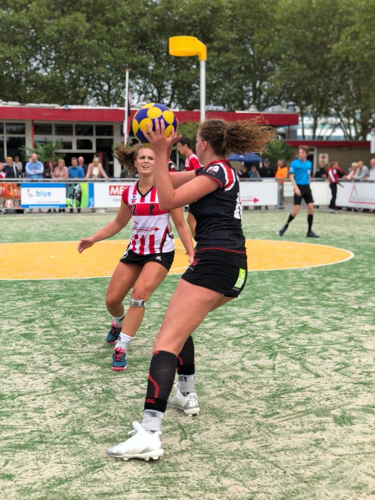 En hoewel de beginfase voor de bezoekers was (1-4), met een zuiver schietende Nienke Hintzbergen, kon het achttal van Korporaal en Folkerts toch voor rust nog herstellen. Nik van der Steen trok met een fraaie onehander uit een vrije bal beide ploegen weer naast elkaar. Waarna Fortuna/Delta Logistiek uiteindelijk met een 8-7 voorsprong mocht rusten. Jessica Lokhorst was op dat moment al binnen de lijnen gekomen, ze verving Claire van Oosten die met een enkelblessure vroegtijdig moest afhaken.