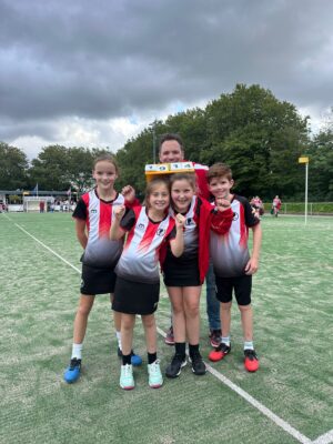 Gelukkig was er een wisselspeler, Seppe van J14, die graag wilde meespelen bij ons en daar waren de meiden blij mee. Een team van 4 is niet prettig, bij blessures of andere afwezigheid sta je zomaar met 3.